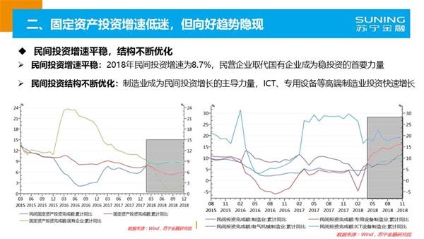 虽然经济增速持续下行,但中国经济的总量历史性地突破了90万亿元,且呈现质量不断提升、结构持续优化的向好势头,主要表现在:民间投资持续回升,民营企业家的投资信心并不十分悲观;制造业投资重新成为投资的主动力,投资结构不断优化;房地产投资虽然已见顶回落,但仍将保持韧性;基建投资也将从此前的拖累因素转变成未来的正能量。