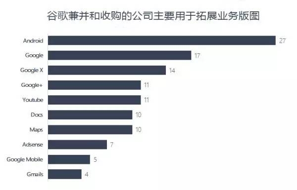从2001年开始,谷歌已投资和收购了196家公司,完胜苹果。要知道苹果已经是41岁的老大叔了,而谷歌才是一个19岁的小鲜肉。