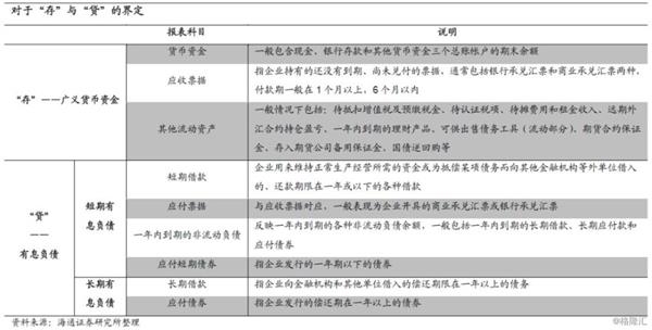 存贷双高中“存”的定义。存贷双高指公司账面显示的货币资金与有息负债同时处于较高水平。“货币资金”科目中的非受限部分一般是公司可以自由动用的资金,除此之外,许多公司购买的理财产品计入“其他流动资产”科目,“应收票据”一般包括商业承兑汇票和银行承兑汇票,变现能力也较强。因此我们定义这里的“存”为广义货币资金,数额等于货币资金、应收票据和其他流动资产三个科目的总和。下文提到的货币资金均指广义货币资金。