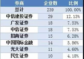 除了上述5家券商外,还有2家券商的保荐项目在10家以上,光大证券保荐11家项目,民生证券保荐10家项目。