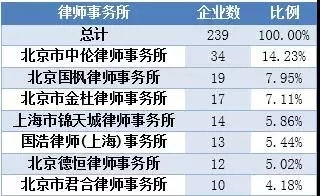 相较于券商,律师事务所的鳌头与第二名的差距更大。北京市中伦律师事务所服务IPO待审企业34家,比第二名多了15家。