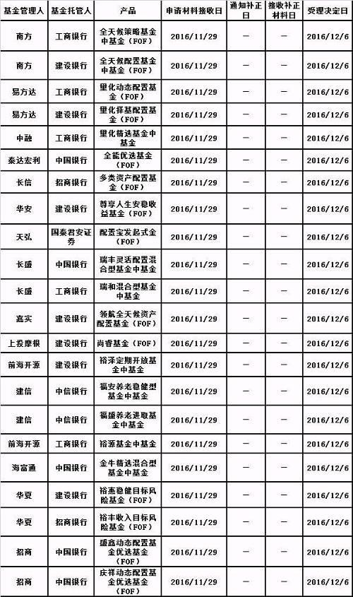 2016年12月6日:证监会受理了第一批公募FOF产品的申报材料。