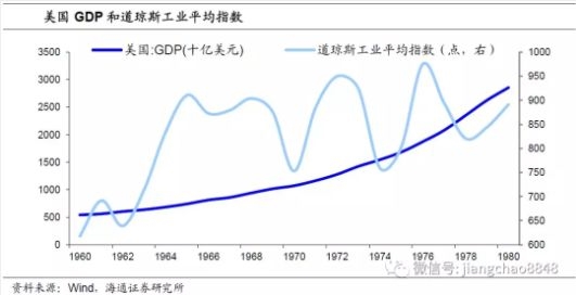 而正是滞胀的出现,使得1960/70年代房价大涨、股市不涨,而其源头其实在于罗斯福新政及其相关的凯恩斯主义刺激政策。