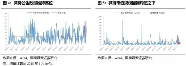 1)当前相较2018年5月、2018年8月的减持阶段性高点仍有距离;