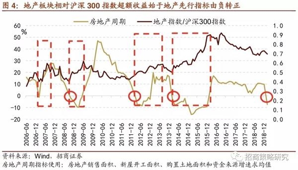 从策略的角度看,地产板块的超额收益往往开始于地产先行指标大幅回落的时候。从历史来看,地产销售、购置面积、新开工面积的同步性相当高。