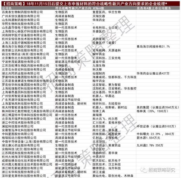 此外,自2018年11月15日起来,大量符合战略性新兴产业方向的企业开始申报上市,可关注相关方向企业的对标A股。