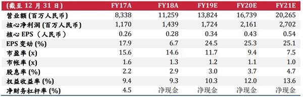 下调2019-20年净利润预测10.1%/9.9%。我们将2019-20年收入预测上调1.1%/1.3%,以反映较强劲的销售增长。考虑到更多的市场营销投入和新成立公司的前期成本,我们上调市场营销开支、行政支出及研发支出占比,2019-20年的净利润预测则下调10.1%/9.9%。我们估测2018-21年的收入及净利润复合年增长率分别为21.6%及23.4%。