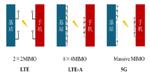 首先,从用量来看,在3G和4G通信网络中一般采用2(基站发射天线数)×2(手机接收天线数)MIMO、4×2MIMO和4×4MIMO技术,而在5G网路中,基站天线数量将提升至128根甚至256根,对应手机的天线数量也将从目前的4根逐渐向8根甚至16根演进。
