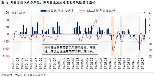这次,盘整后的大涨意味着什么?业绩悲观预期修正下的外资流入趋势修复。3月以来市场的区间震荡盘整,一方面是两会后政策催化减少,另一方面是业绩暴雷的担忧加强。这些担忧在陆股通的流入节奏上反映更为明显。进入2019年以来,每次外资大幅流出总会带来明显盘整。我们认为,两大因素带来的此次盘整后的大涨:其一,贵州茅台、立讯精密等MSCI标的业绩超出市场预期,业绩忧虑暂消;其二,步入二季度,经济增长压力倒逼降准等货币政策推出,政策宽松预期再次泛起。同时,周五的大涨也暗示了一个重要的信号,外资流入是必然过程,外资大幅流出的风险正在降低。
