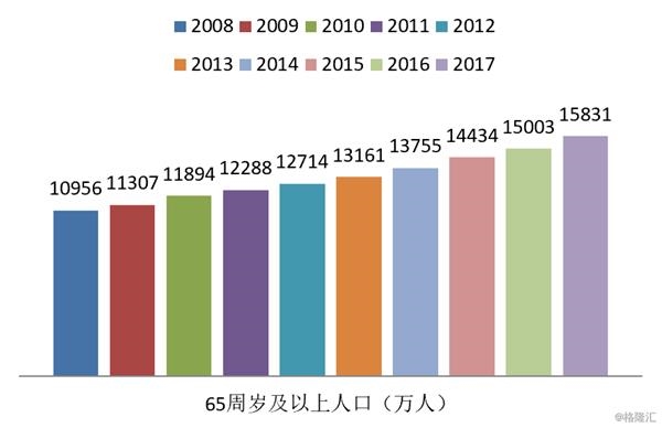 图表5:2008年-2017年中国65周岁及以上人口数量走势