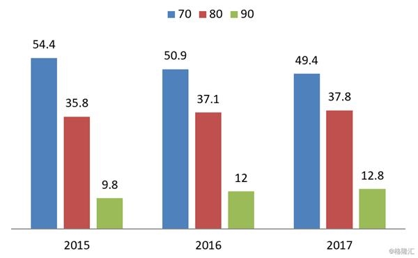 图表6: 70、80、90后消费者贡献度情况(单位:%)