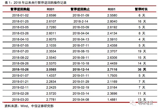 一季度货币政策较2018年有何不同?近年来逆回购成为央行对市场流动性精细调整的主要工具之一,2018年以来央行曾多次连续数月暂停逆回购操作,且一般暂停时间处于月初流动性较为宽松的阶段。2018年货币政策整体宽松,年内央行共有10次持续暂停逆回购操作的记录,流动性投放呈现“缩短放长”的特征。2019年初至今,央行有5次持续暂停逆回购操作,货币政策整体仍延续宽松,但宽松力度边际减弱。