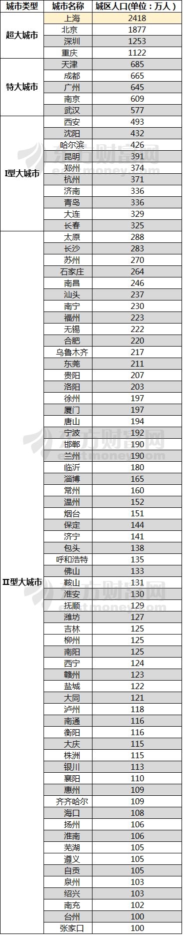 超大特大、Ⅰ型大城市以及Ⅱ型大城市名单,来源:住房和城乡建设部