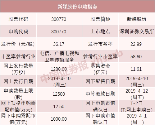 本周将迎来2只新股申购,一只是今天(4月10日)创业板的新媒股份(申购代码:300770),另一只是明天(4月11日)创业板的智莱科技(申购代码:300771),顶格申购分别需要12.5万元和10万元深市市值。