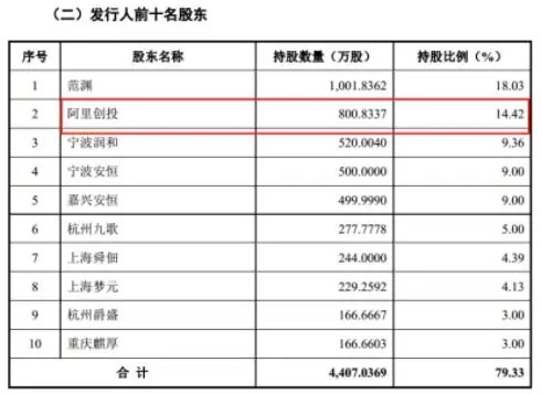 马云什么时候投资这家科创板拟申报企业的?从招股书可以看到,阿里创投2016年1月就出现在安恒信息股东之列,出资1550多万元,持股34.46%,随后经历了多次股权的变更,到上市前持有该公司14.42%的股份。