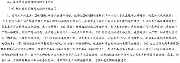 3月26日的发审会上,天元宠物产品的销售模式受到重点询问,该公司产品主要以ODM/OEM贴牌方式在境外销售,报告期ODM/OEM销售模式下产品收入占比呈逐年上升趋势。