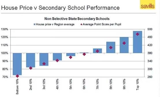 事实上,除了居住成本高、人才聚集的伦敦之外,英国大多数区域里,靠近优质公立学校的地段,房价溢价还不到10%。