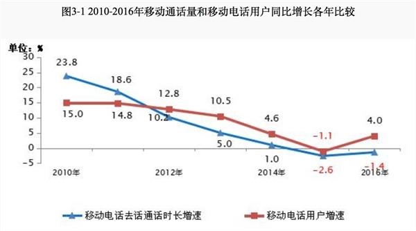 每日经济新闻记者在工信部公布的《2016年通信运营业统计公报》中发现: