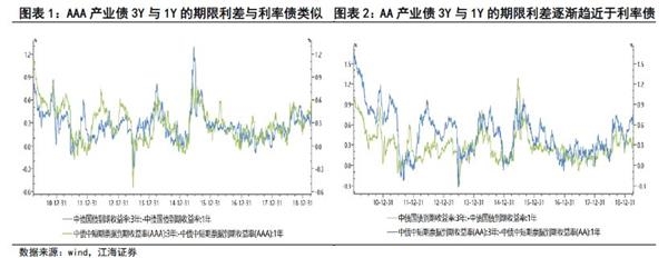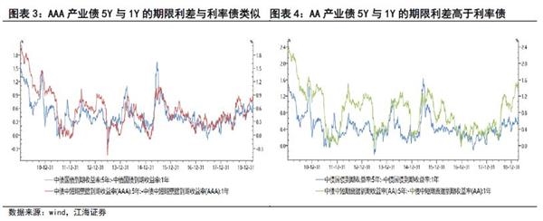 其次,如何理解信用债期限利差与利率债期限利差的差异,即如何解释不同期限、风险差异对期限利差的影响?这或许与流动性和风险差异有关(类似流动性偏好理论),期限越短的债券流动性越强、风险越低,因此相比5年期债券,市场对3年期信用债的偏好较强,其期限利差与利率债的差距也较小。在这两者中,风险差异明显起到了更为重要的作用,3年期和5年期AA级信用债的期限利差都明显高于利率债,而AAA级信用债期限利差与利率债没有明显的差异。