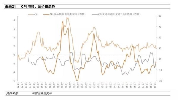 至于猪肉价格上涨是否会对CPI带来压力,平安证券表示,假设非瘟等因素将刺激单一月份 CPI 项下的猪肉分项最高冲至 50%左右,这会对单月 CPI 在 3 月基础上进一步带来最高约 1 个百分点的推动。但是,今年油价可能存有一定向下压力,而即使在油价保持当前水平不变的假设下,高基数也会使得油价同比增速出现逐月下行,预计最高可以为 CPI 带来 0.2-0.3 个百分点的向下对冲效应。