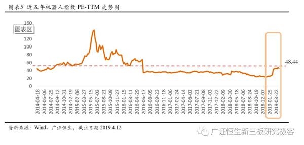 从估值水平上看,19年年初以来我国机器人行业估值水平不断提高。机器人行业估值水平从1月初的23.51倍一路攀升至目前的45.66倍,近五年整个行业PE-TTM平均值为48.44倍。