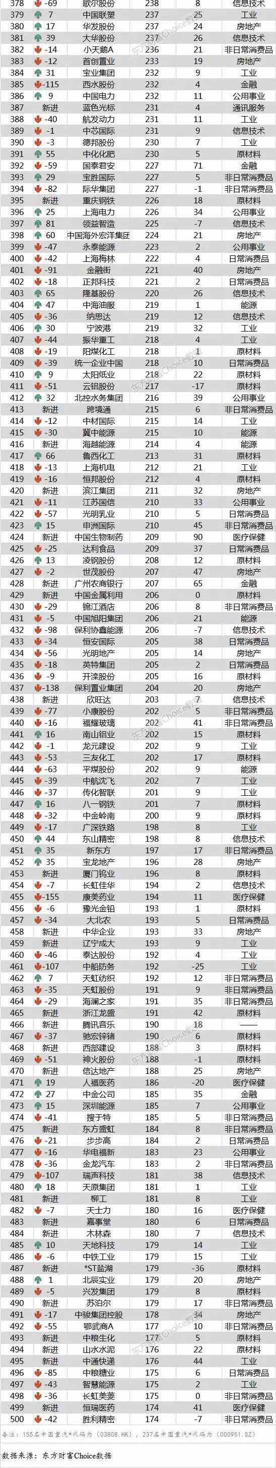 5)中国上市企业500强名单