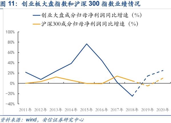 同时,我们认为也需要强调2019Q1创业板业绩增长“虽负犹荣”。结合当前来看,创业板配置水平偏低,在可预见未来,创业板盈利的不断改善将成为其投资价值的重要支撑。19Q1创业板单季度归母净利润同比增速为-14.79%,较2018Q4单季度增速-529.13%大幅提升。进一步剔除温氏、乐视和宁德后,创业板19Q1业绩同比降幅缩窄至-11.40%,与我们此前在外发专题《为何我们认为创业板Q1预告业绩增长“虽负犹荣”?》中测算的数值(-13.68%)较为接近。剔除温氏股份和宁德时代(乐视当前尚未披露)后回升至-11.40%。在此,我们再次强调,在可预见未来,创业板盈利的不断改善将成为其投资价值的重要支撑。在此前外发的专题报告《为何我们认为创业板Q1预告业绩增长“虽负犹荣”?》中,对于2019年创业板,我们倾向于认为其商誉减值风险随着2017、2018年持续两年的消化,今年有望迎来好转,在Q1预告业绩增速环比回升之后2019年业绩将大概率呈现逐季回升的趋势。和主板的对比之下,我们认为创业板在2019年的业绩相对优势将会越来越明显,保守预计全年业绩同比增长在10%左右,主板(非金融)则在-5%左右。而目前,国内基金在三大板块的仓位分布中,仅创业板配置水平低于历史平均。2019Q 1创业板净减仓0.14pct至14.36%,低于历史平均水平的15.27%。