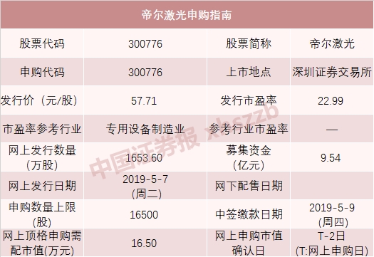 摘要:  本周沪深两市将迎来5只新股申购,分别是今天(5月6日)创业板的中简科技(申购代码:300777),明天(5月7日)创业板的帝尔激光(申购代码:300776),以及周五(5月10日)沪市主板的泉峰汽...