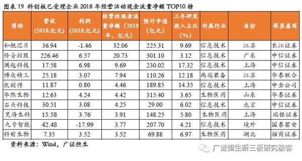 科创板已受理企业的在2018年的平均营收比同期创业板企业略低,平均净利润是其3.19倍,平均经营现金流与其相当,研发投入占比是其1.57倍,可见科创板首批受理企业财务规模基本满足A股申报条件,成长性高,且其高研发投入情况更能体现科创属性。