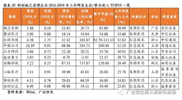 看研发:科创板已受理企业在2016-2018年三年间研发投入占营业收入的平均比例为11.70%,高于同期创业板6.35%的水平。