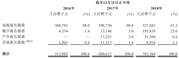招股书显示,瑞诚传媒于2003年成立,是电视广告服务营销商。根据灼识咨询报告,按照2018年电视广告收益计算,瑞诚传媒在中国约5000家电视广告媒体营销商中位于第十,市场占有率约为0.3%。