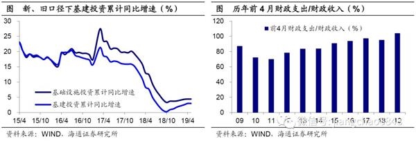 短期经济依旧偏弱。4月工业生产回落符合预期,需求端三驾马车全线下滑,尤其是制造业投资、民间投资增速仍在放缓,值得重视,这意味着终端需求仍在筑底。从高频数据看,5月以来,38城地产销量增速、6大电厂耗煤增速双双下滑,指向5月经济开局依然偏弱。在“房住不炒”的政策基调下,积极财政仍是托底短期经济的重要抓手:一方面,广义财政支出有待提速,支持基建投资;另一方面,减税对居民消费、企业盈利的提振效应仍待显现。
