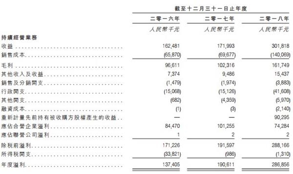 与之前的申请资料相比,公司业绩没有做出更新。2016-2018年,嘉宏教育实现营业收入分别为1.62亿元、1.72亿元和3.02亿元,年度溢利分别为1.37亿元、1.91亿元和2.86亿元。