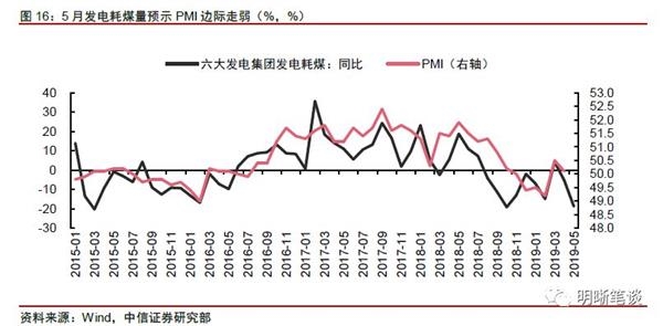 即将公布的重要经济数据有PMI和外汇储备,5月PMI走弱概率较大。本周五将公布中国5月制造业和非制造业PMI,下周五将公布中国5月外汇储备。观察2015年至今的发电耗煤同比数据和PMI的关系可以发现,发电耗煤同比变动与PMI走势大体相符。发电耗煤同比正增的月份,PMI大概率位于荣枯线以上;而发电耗煤同比下滑的月份,PMI大概率位于荣枯线以下。5月发电耗煤同比下滑约18.75%,这意味着PMI下滑至荣枯线以下的概率较大,届时货币政策边际放松的预期或将升温。