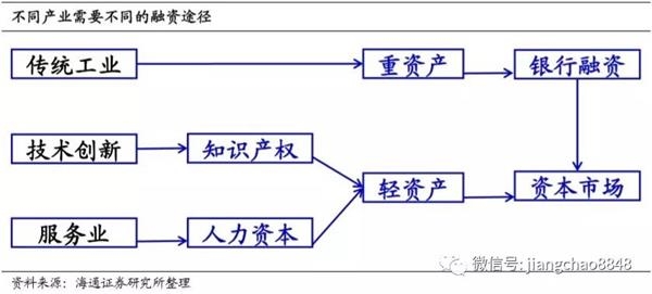 而后工业化时代,更多的融资需求是为了科技创新,而创新型企业核心的资产是人力资本和知识产权,都属于轻资产,难以有效定价并作为抵押,因而,以银行信贷这种间接融资为主的金融体系,就很难满足这类科技创新企业的融资需求。