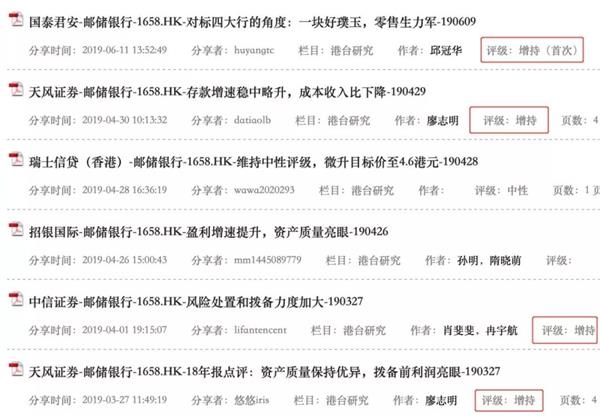 不过在这之前,各路券商研究机构,已纷纷对邮储银行给出“增持”评级。