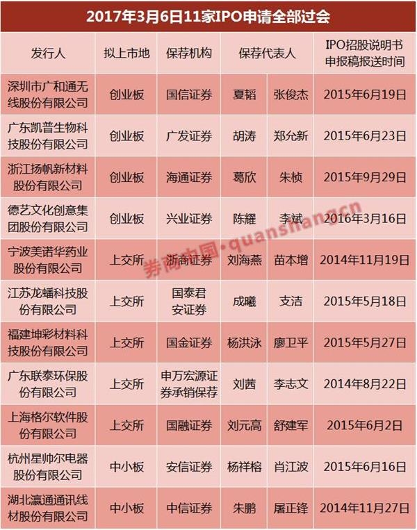 1天内11家IPO申请均过会