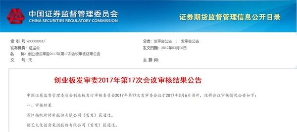 创业板发审委2017年第17次会议审核结果显示,2家企业均过会,拟创业板上市。