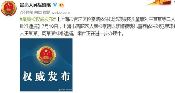 7月10日,上海市普陀区人民检察院依法对犯罪嫌疑人王某某、周某某批准逮捕。案件正在进一步办理中。