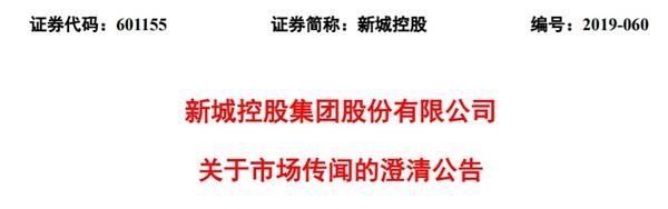 7月22日晚间,新城控股发布澄清公告,回应有关市场传闻称: