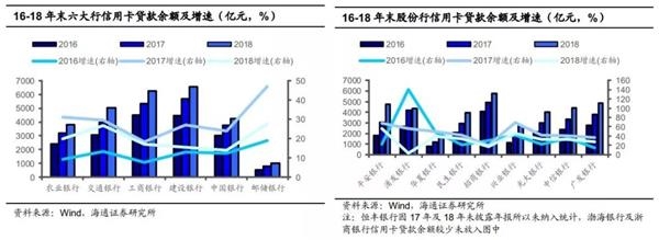 多家银行不良率抬头,共债风险影响质量。1)多家银行不良率抬头。18年末信用卡逾期半年未偿信贷余额约为788.61亿元,逾期率约为1.16%,同比小幅下降,整体看还算平稳。微观角度来看,大行中农行、交行18年信用卡不良率下降,建行不良率小幅增加。股份行中中信银行、平安银行、民生银行及浦发银行18年信用卡不良贷款率有明显回升,其中民生银行的不良率仍旧是最高的,18年底为2.15%,中信银行和浦发银行业都在1.8%以上。2)共债风险影响信用卡贷款质量。18年监管推进成为P2P等网贷平台集中爆雷的导火索,并通过共债风险影响到了信用卡贷款质量。除了监管加剧共债风险外,信用卡不良抬头本质上与当前的整体宏观环境有关。18年整体信用偏紧,社融存量增速新低,当融资增速无法保证存量债务的利息偿还,必然带来债务违约,信用卡背后的主体中,资质较差、信贷资源获取能力较弱的那部分,受到影响兑付发生困难。特别是17年我国信用卡业务迅速扩张,发卡量攀升背后也伴随着一定的客户资质下沉,增加了这部分资质较差借贷主体的比例。