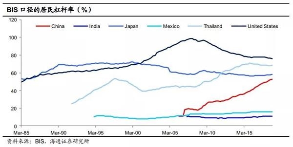 BIS口径下我国居民杠杆率绝对水平不算高。根据BIS计算的居民杠杆率数据,从绝对值看,截至18年底我国的居民杠杆率为52.6%,低于大多数发达国家,但要高于发展中国家平均水平。
