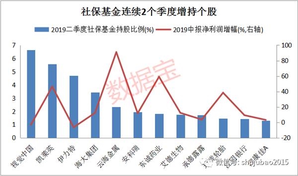 以上30股中有12股连续2个季度获社保基金增持,包括江阴银行、承德露露、玲珑轮胎、深康佳A。视觉中国增持比例最高,最新社保基金持股6.63%,而去年末社保基金未持有该股。值得注意是,视觉中国4月份突遭“黑洞”事件,股价大幅下挫。社保基金在二季度选择了低位大幅增持,一季度末仅持股585.14万股,而中报持股2059.79万股,二季度增持1474.65万股,如果按视觉中国黑天鹅事件后至6月末的平均股价19.4元计算,社保基金共投入抄底资金2.86亿元。凯莱英增持比例也较高,社保基金增持3.44%,今年中期净利润同比增长46.37%。