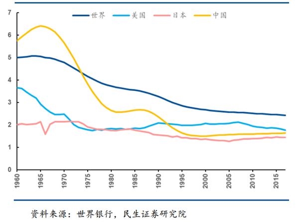 中国的总和生育率自1992年开始低于2.1的世代更替水平,1999年降至1.49。之后缓慢回升,但是到2017年也仅为1.63,既低于世界平均水平,也低于美国。