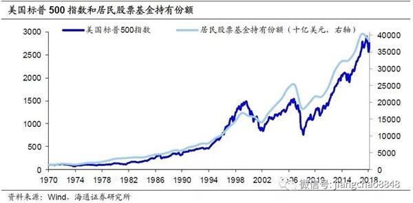 一方面,赚钱效应吸引资金入市带来新增配置。随着美国股市持续走牛,美国居民纷纷将更多的资产配置于股票、基金等金融资产中,以获得较高的投资回报。另一方面,股价上涨也使得居民原来持有的资产升值。1980年美国居民资产配置中股票和基金占比23%,这部分资产受益于股票价格上涨,升值也快于其他资产,其在居民资产中的占比也就越来越大。