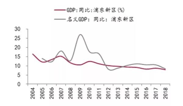 但这些年来,浦东的GDP增速也有所回落,如2018年浦东实际GDP增速为7.9%,名义为8.38%。今年上半年,上海的GDP增速降至5.9%,下半年经济下行压力依然较大,所以,如果今后浦东经济如果不能形成新的增长点,年均11%的名义增速很难实现,则7年内也很难实现翻番。
