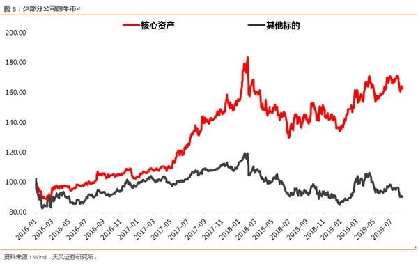 5、外资长期流入强化了“少部分公司的牛市”。从目前的国内主要政策基调来看,一方面金融供给侧改革,另一方面房住不炒保持定力,目的都是挤压金融地产,让利于制造业和科技产业,帮助换挡器的经济完成结构转型。因此,这样的政策背景,就导致虽然短期无法看到经济改善的预期,但是长期来看却是非常“鼓舞人心”的。对应到市场上,指数虽然很难看到大机会(被银行地产周期等权重板块的估值所拖累),但是消费和科技的龙头公司,在经济结构转型的换挡器,从业绩层面最为获益,市场也是属于他们的结构化牛市。外资在这一过程中,会加强这样的趋势,下图中的外资持股前50构成的指数,是少部分公司的牛市,而其余公司构成的指数很难有大机会。