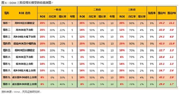 6、外资长期流入如何塑造“A股定价体系”?外资长期流入的过程,对“A股定价体系”的重塑,通俗来说其实是对“跑得快”和“活得久”的重新定义。这一过程,我们可以用下面DDM三阶段增长模型的估值测算表来解释: