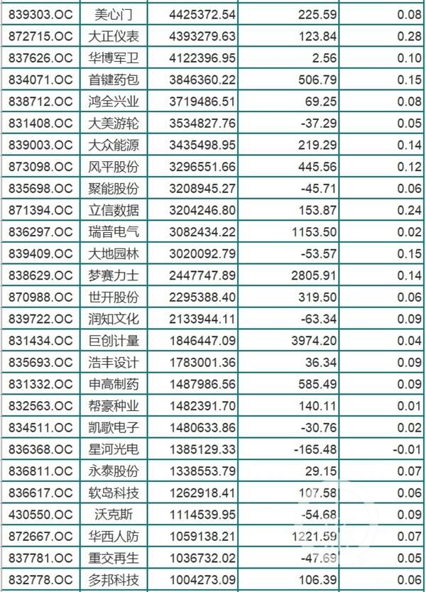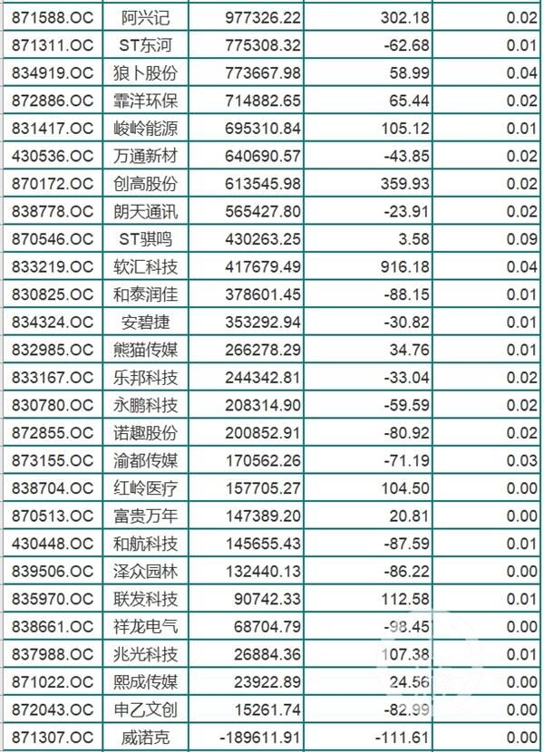 另外,净利润1000万元到2000万元,有10家,分别为惠凌股份1949.51万元、聚融集团1905.78万元、熊猫雷笋1622.47万元、高速传媒1523.27万元、旺峰肉业1515.70万元、瑜欣电子1335.29万元、旺成科技1235.72万元、华西易通1151.79万元、港力环保1076.07万元和渝欧股份1017.21万元。