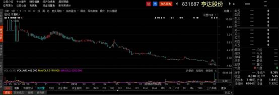 亨达股份(831687.OC)于2015年1月15日挂牌新三板,同年8月10日开始做市,做市首日开盘价为9.5元,如今股价1.71元,跌去了82%,目前市净率仅有0.2.